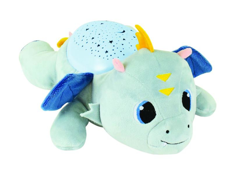Lampa muzicală de pluș Leon Dragonul cu proiecție luminoasă și melodii de leagăn.