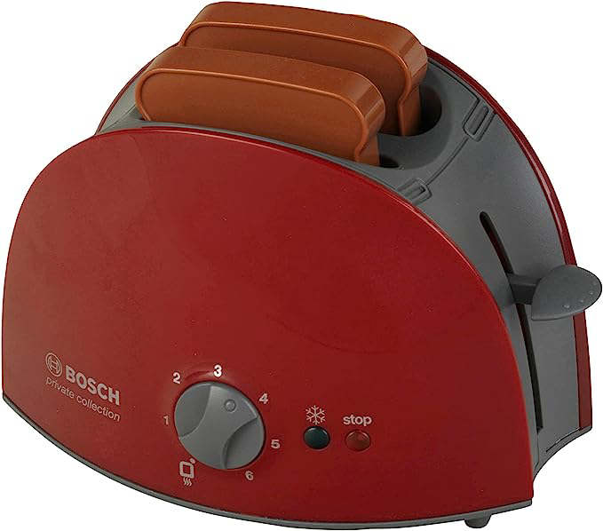 Toaster de pâine licențiat Bosch, jucărie cu funcții realiste, ideal pentru micii bucătari. Pâinea prăjită de jucărie sare automat după câteva secunde, imitând perfect funcționarea unui toaster adevărat. Este o replică fidelă a aparatului Bosch, dotată cu comutator imitator, design realist și funcții care stimulează jocul de rol. Complet sigur pentru copii — nu se încălzește și nu prezintă risc la utilizare.