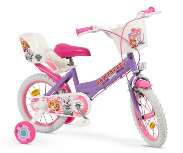 Bicicleta 14" Paw Patrol este recomandată fetițelor cu înălțimea între 100 și 110 cm (~4–6 ani). Concepută pentru siguranță, confort și distracție, bicicleta include roți ajutătoare și accesorii pentru transportul jucăriilor preferate.