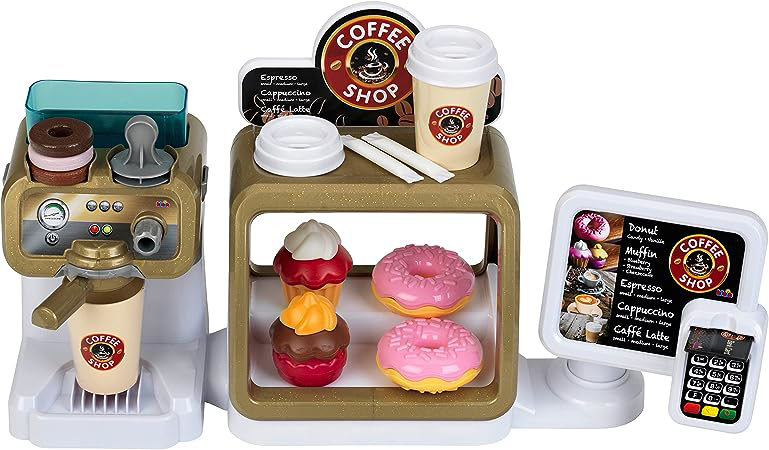Transformă joaca într-o experiență realistă cu setul Coffee Shop – barul de espresso ideal pentru micii barista! Copiii pot pregăti băuturi, servi clienții și exersa jocurile de rol cu funcții interactive de sunet și apă.