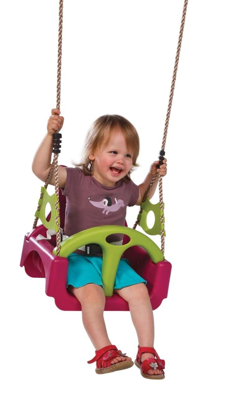 Leagănul Trix Mov-Verde este ideal pentru joaca celor mici, fiind un model versatil ce poate fi configurat în 3 moduri diferite, adaptându-se vârstei și etapelor de dezvoltare ale copilului. Prevăzut cu centură de siguranță și frânghie reglabilă, oferă confort și protecție pentru cei mici, fiind perfect pentru curte sau grădină. În varianta completă, este recomandat copiilor sub 3 ani, oferind susținere suplimentară pentru joaca sigură.
