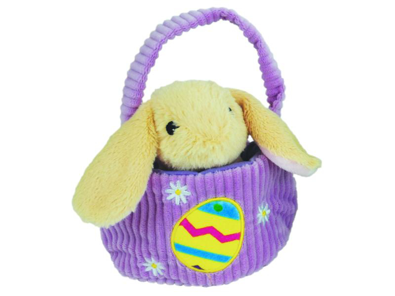 Design adorabil, specific sărbătorii de Paște – iepuraș în coșuleț.